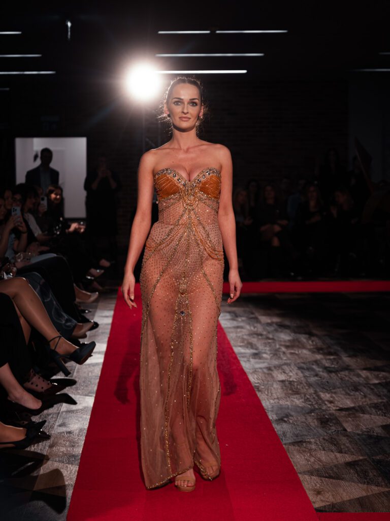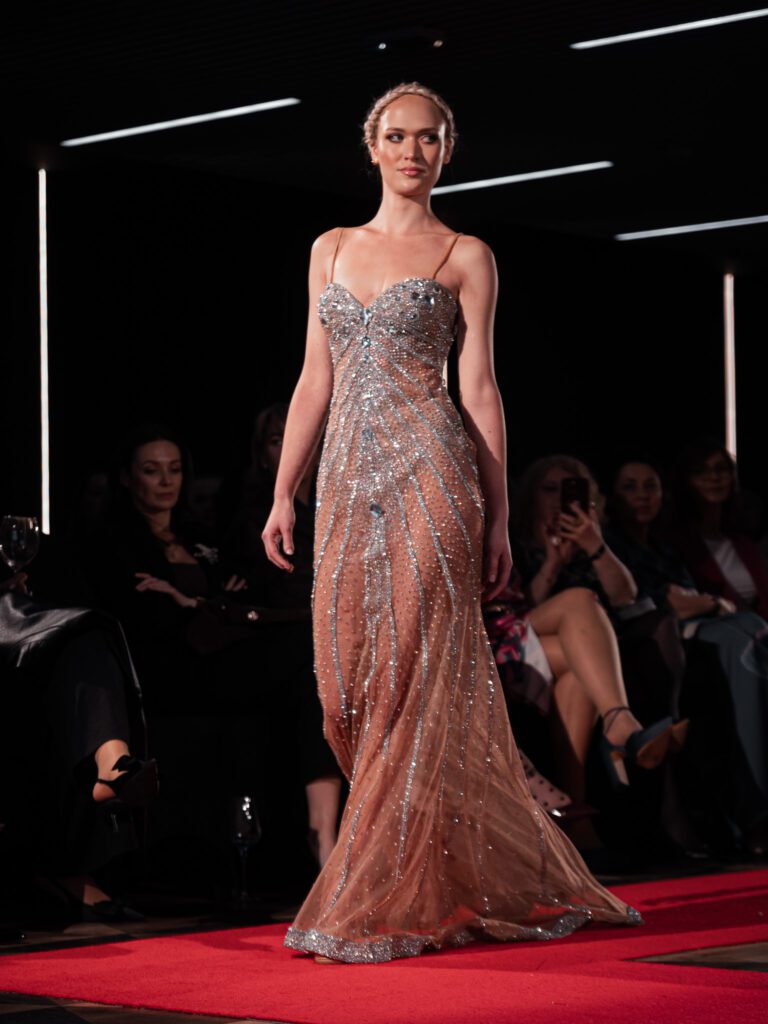 Kolejny pokaz to Adrian Lewandowski i jego charakterystyczne, kobiece projekty, pełne cekinów i dopasowanych sylwetek. Swoje niezwykle kobiece, kolorowe, momentami wręcz barokowe suknie zaprezentowała również Diana Walkiewicz (DeVu), której kolekcja została wyróżniona w Dubaju.